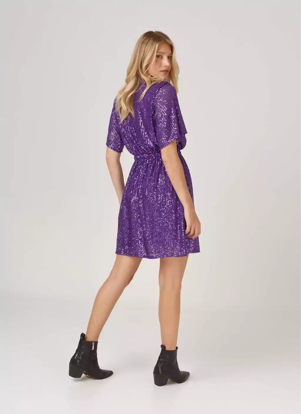 Vestido TINA, confeccionado textil bordado con lentejuelas. Forrado en su interior